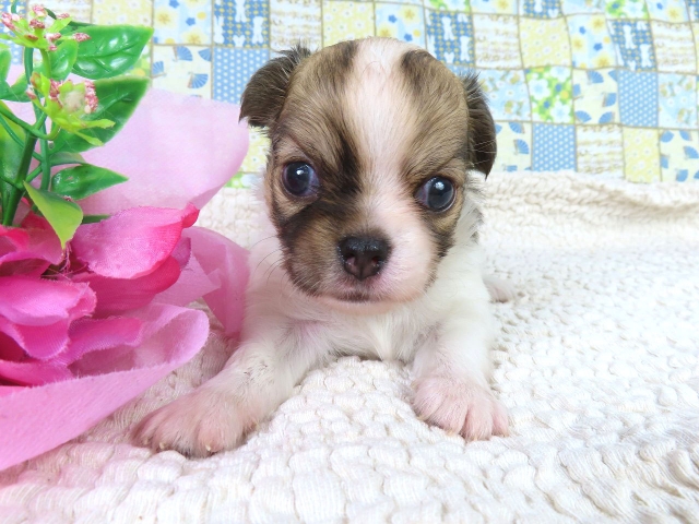 迎えて4日が経過しました。フレンドリーな性格の仔犬で、経過は順調な印象です。購入判断時の質問にも、その後の育てる際の質問にもしっかり回答いただきました。その後も気にかけていただていることが伝わってきて嬉しく感じています。パピヨンメインの犬舎さんなのでチワワの頭数は比較的少ないですが、良い出会いに恵まれました。本当にありがとうございます。(千葉県 男性)
