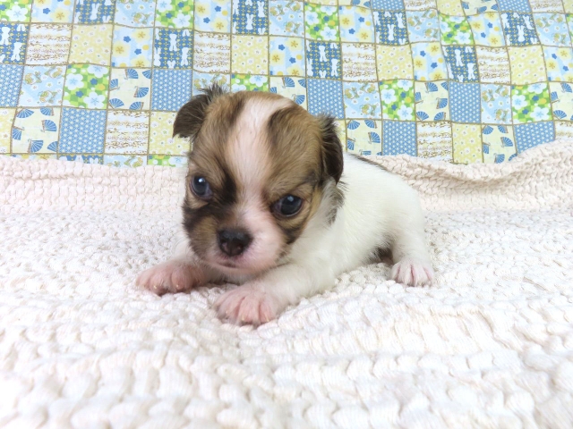 コメント | ※体重などの情報は後日掲載いたします。 モレラがありますが成長ともに塞がることがあるため特に欠点とは考えておりません。 子犬と親犬はブリーダー歴30数年、40数年の経験者と動物看護士などが中心に365日、注意深く、丁寧に観察してお世話をしております。 子犬ちゃんは人間同様、個人差がありますので、子犬ちゃんのお世話の仕方、お食事あげ方はご見学時、お迎え時などに担当のスタッフより詳しくお伝えいたしますのでなんでもご遠慮なくご相談ください。 JKCの全犬種審査員資格者と単犬種パピヨン審査員資格者が在舎しておりますので、パピヨンのスタンダードを熟知しております。 当犬舎はパピヨン一筋50年を超える日本で一番歴史のあるパピヨン専門犬舎です。 犬舎号と登録は1970.10/19です。 日本中の国産のパピヨンで当犬舎の血統が入っていない犬は存在しません。 血統書発行団体JKCより下記表彰を受けております。 JKC特別繁殖奨励賞第1位受賞 犬舎 JKCパピヨン犬種表彰受賞 犬舎 ご見学は大歓迎ですのでどうぞご連絡の上、おいでください。365日年中無休です。 2013年9月1日より「動物の愛護と管理に関する法律」の改正によって、「生体販売時の現物確認・対面販売」が義務規定となりましたので、最低一度は直接犬舎までご来舎いただかなくてはなりません。従いまして今までのようにネットで写真、動画をご覧になっただけではご購入ができなくなりました。これはすべてのブリーダー・ペットショップも例外がありませんので、ご理解、ご協力のほど御願い申し上げます。 手続きに時間がかるため海外への輸出はいたしません。 スタッフの取得資格 (社)JKC 全犬種審査員2名(社)JKC 単犬種パピヨン審査員1名 (国) 動物看護師統一認定機構 愛玩動物看護師国家資格取得(社)JKC スチュアート1名(社)JKC A級ハンドラー1名 (社)JKC C級ハンドラー1名(社)日本愛玩動物協会 愛玩動物飼養管理士2級3名 動物の愛護及び管理に関する法律による動物取扱責任者2名 |