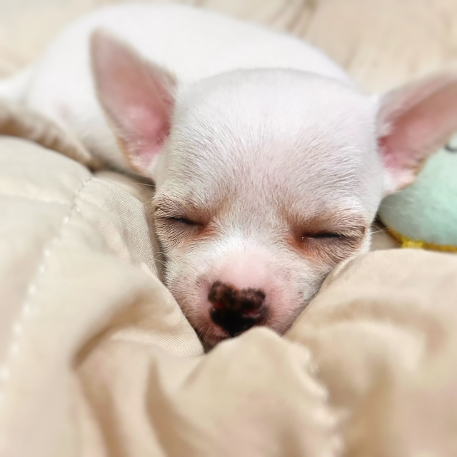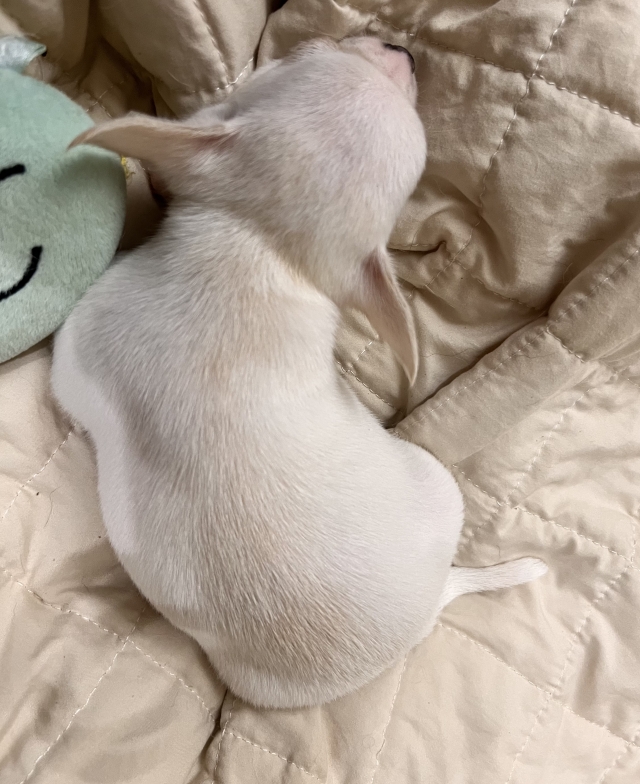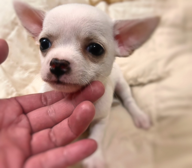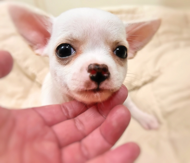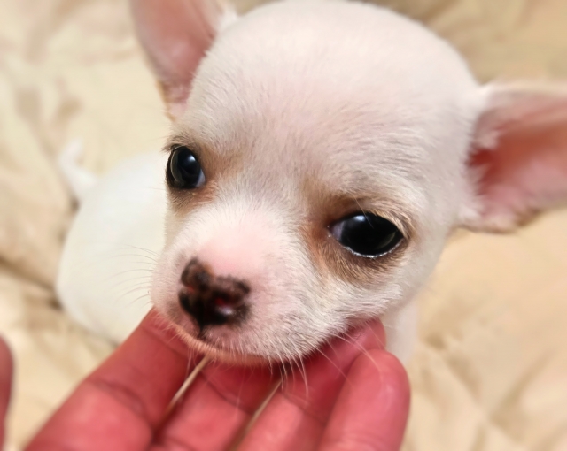 | コメント | 9月1日生まれのスムースコートチワワの男の子。 クリーム&ホワイトの優しい毛色が特徴で、ぬいぐるみのような柔らかい雰囲気を持っています。 将来的には頭部も貼ってきて、目もさらに大きくなり、より魅力的なお顔立ちに成長する見込みです。 掃除機や乾燥機の音にも動じない、物怖じしない性格。 新しい環境にも前向きに馴染める、安心感のある子です。 メッシュトイレでしっかりトレーニング済み。 (※環境が変わると一時的に間違えることもありますが、すぐに順応できます) カリカリフードをしっかり食べており、食欲も安定しています。 お留守番もできますので、日常生活にも無理なく馴染めます。 LINEでのビデオ見学も承っております |