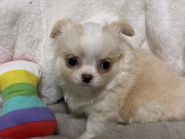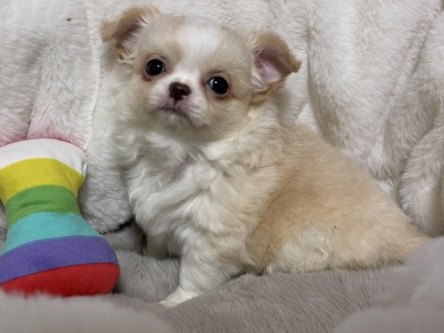 チワワ(ロング) ホワイト&クリームマーキング ♀(女の子) 岩手県【 チワワ・ブリーダーズ 】