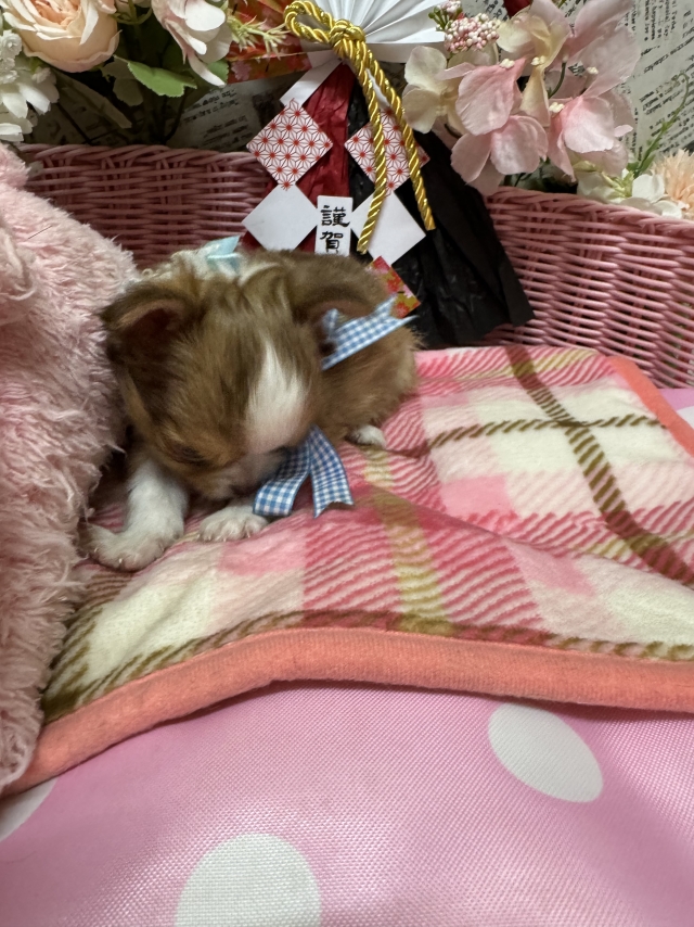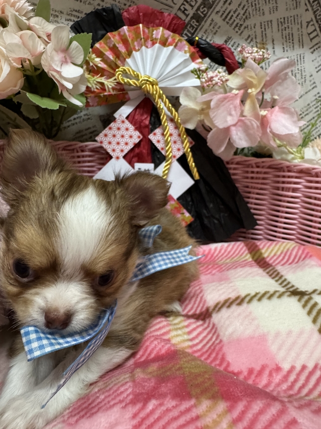 チワワ(ロング) レッド&ホワイト ♂(男の子) 大阪府【 チワワ・ブリーダーズ 】