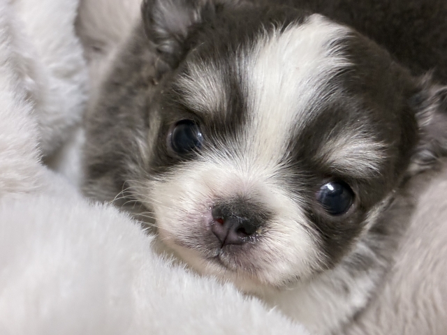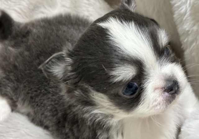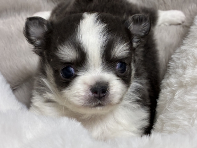 チワワ(ロング) ブルー&ホワイトマーキング ♀(女の子) 岩手県【 チワワ・ブリーダーズ 】