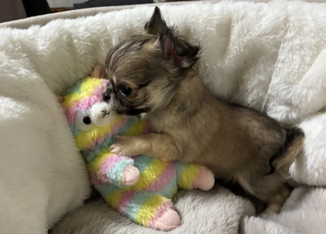 元々チワワを飼っている私の、両親も犬を飼いたいという事で、前川ブリーダーを見つけ、たまたま近くにいらっしゃるということもありすぐ見に行きましたが、チワワちゃん達はみんな可愛く、元々気になっていた子にすぐ決まりました。前川ブリーダーも、優しく色々教えてくださり、ワンちゃんたちを大切にされてる感じがしました。私も早くにもっとお会いできていたらと思いました!仔犬もすごくお利口さんです。またよろしくお願いします!!(岩手県 男性)