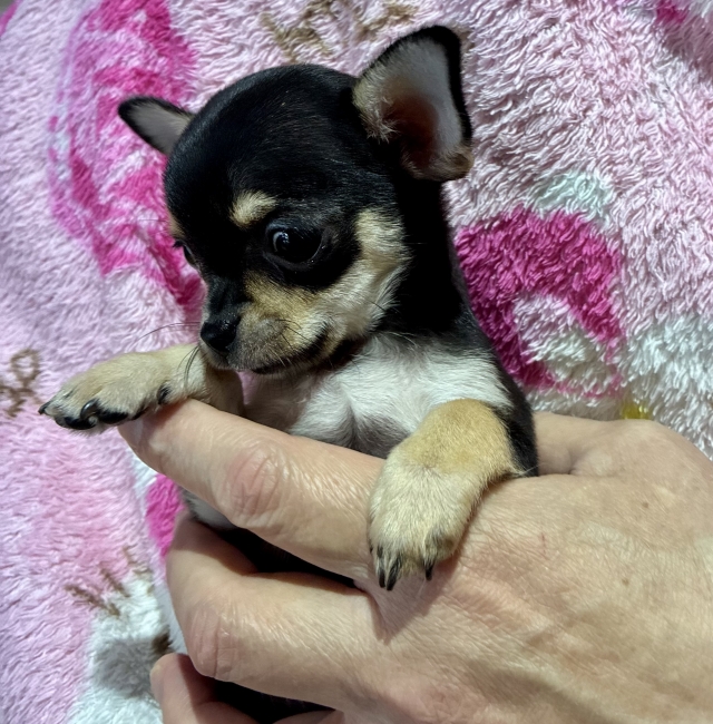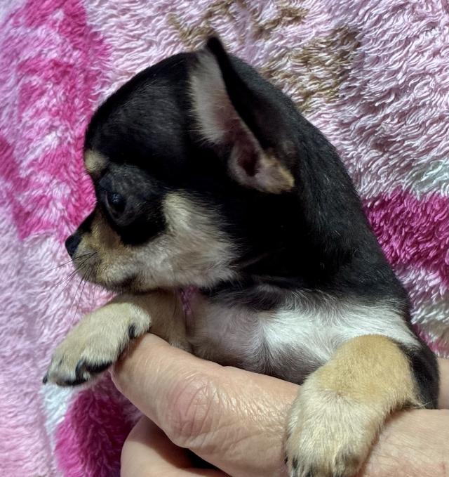 チワワ(スムース) ブラックタン&ホワイト ♀(女の子) 広島県【 チワワ・ブリーダーズ 】